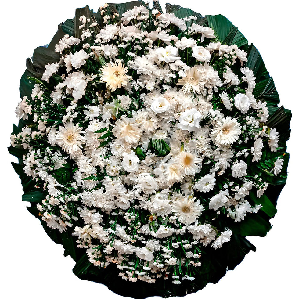 Coroa de flores montada com cuidado, respeito e elegância, ideal para prestar uma última homenagem com sensibilidade.